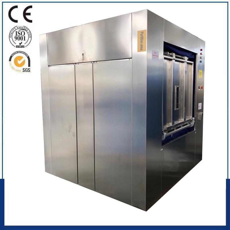 衛(wèi)生隔離式洗衣機(jī)理念將洗衣房分成了潔凈區(qū)和非潔凈區(qū)兩個獨(dú)立的操作區(qū)間。洗滌物由位于非潔凈區(qū)一側(cè)的機(jī)門裝入,洗滌完畢后從位于潔凈區(qū)一側(cè)的機(jī)門取出。防止洗滌物由于從非潔凈區(qū)裝載和出料引起的交叉污染,是無塵工業(yè)和醫(yī)院洗衣房的理想解決方案。